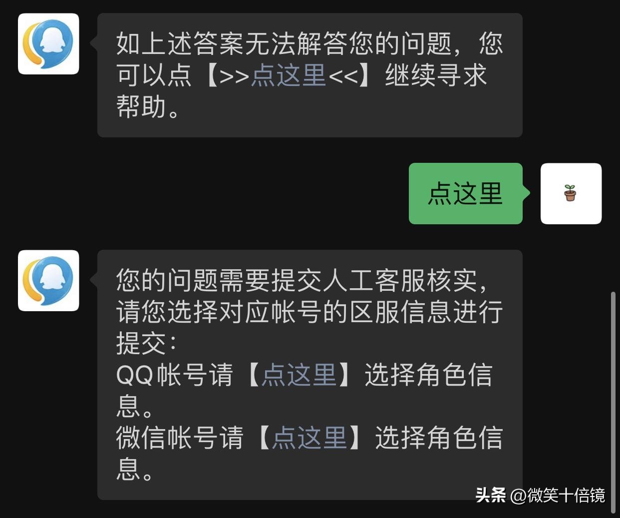 其次,依次发送“和平精英、寻求帮助、累充问题”!如果此时出现自动回复,那么继续发送“人工客服”,一直到出现“点这里”为止!