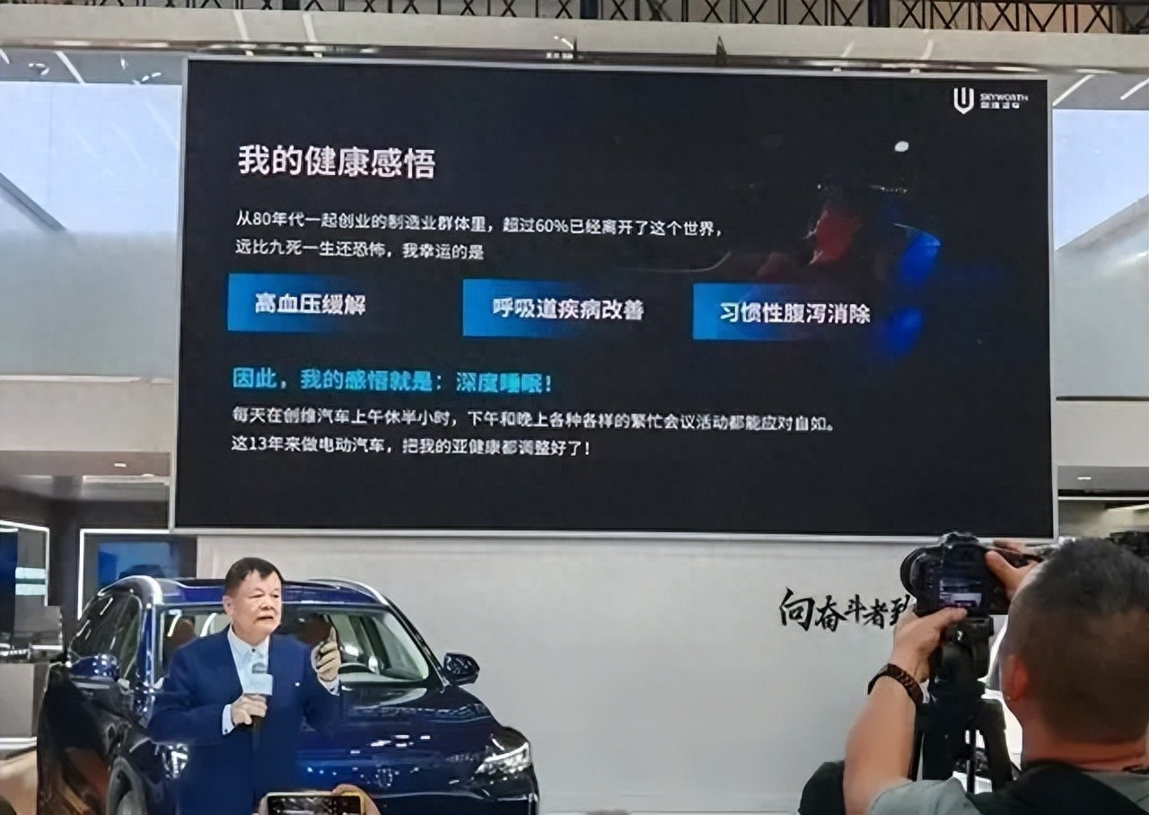 这已经不是黄宏生第一次发表“语出惊人”言论。早在2023年创维春季技术生态大会上,黄宏生就曾表示,“开创维汽车,寿命延长30年,让每位车主享百岁人生。”“自从开了创维电动车,我的高血压、糖尿病等毛病都好了。”