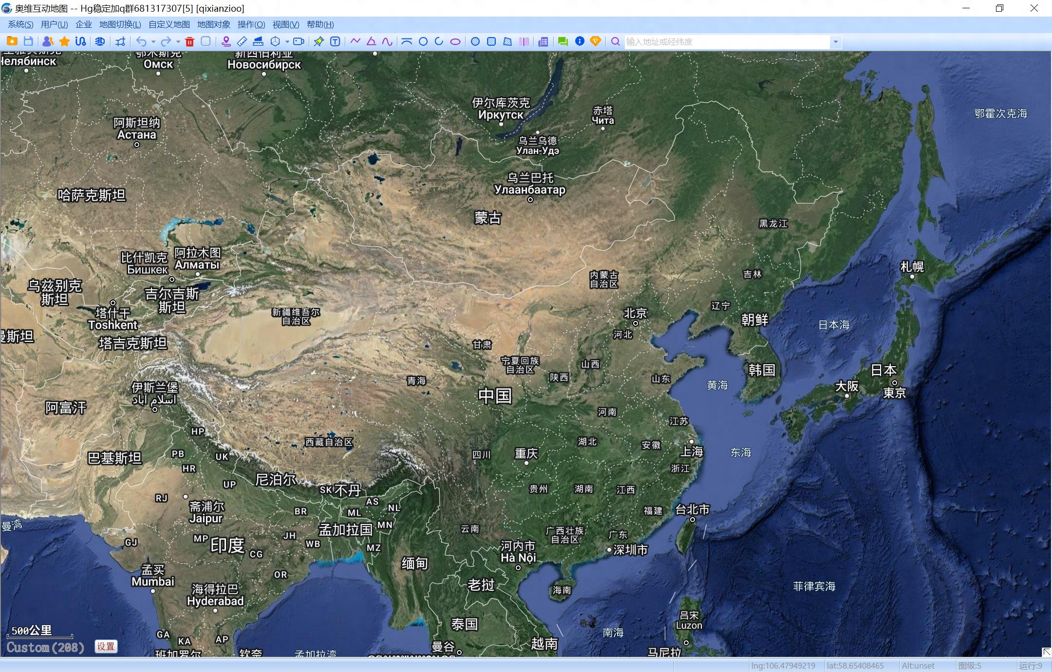 这是软件的主界面,软件有许多地图可以选择,有天地图、四维地图、世纪空间卫星地图、吉林一号卫星地图,不过我还是喜欢谷歌卫星图,谷歌卫星地图属于自定义地图,需要另外添加,接下来的操作我们使用谷歌卫星地图