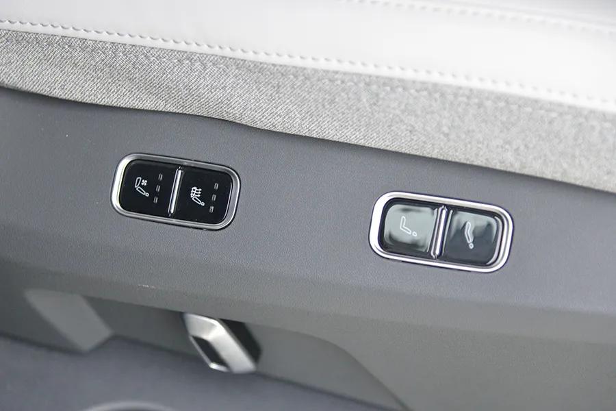 我们这辆顶配车有一个定制版的儿童安全座椅,供应商是“好孩子”,适用年龄为0-7岁,25公斤以下。因为是定制款,所以这个儿童安全座椅有很多功能可以与车联动,不仅支持电动旋转、俯仰调节、通风等功能,而且座椅内还有传感器,如果小孩尿了,车就可以提醒。另外,安全座椅还配有支撑腿,以及LSP侧撞缓冲块。