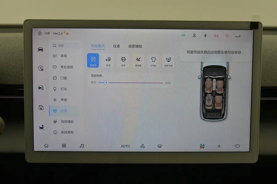 这辆车有一块14.6英寸中控屏,车机芯片是主流的高通骁龙8155,车机系统是标准安卓。不过,界面布局非常有创意,可以根据需要任意放大预览APP功能。我们这辆顶配车配了“好孩子”专用儿童安全座椅,能通过车机对儿童座椅进行左右和仰俯调节,甚至还支持儿童座椅通风。另外,这辆车还支持预约紫外光消杀,这个功能对于很多“宝爸宝妈”来说,直戳痛点!