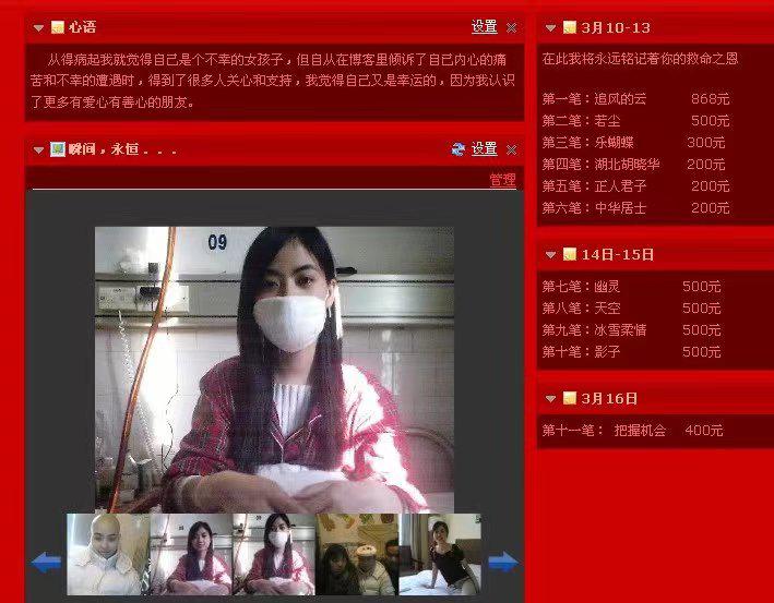 今年39岁的向海叶是湖南株洲人,2006年,她患上了急性白血病。向海叶的父母在株洲开了家服装厂,原本家中经济情况不错。向海叶患病后,父母低价卖掉了服装厂,筹了20多万元给她化疗治病。但要想治好病,还需要准备30万元进行骨髓移植。无奈之下,向海叶向数家媒体和株洲市红十字会寻求帮助。多家媒体报道了向海叶遭遇的困难,株洲市红十字会也帮助筹款。三个月的时间,向海叶就收到30余万元捐款,还有人到医院看望她,她在自己的博客上记下了每一位捐款人的名字,准备病愈后感谢。
