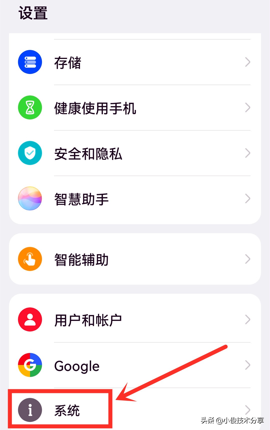 我们在设置页面中,直接往下滑动找到【系统】设置,点击进去