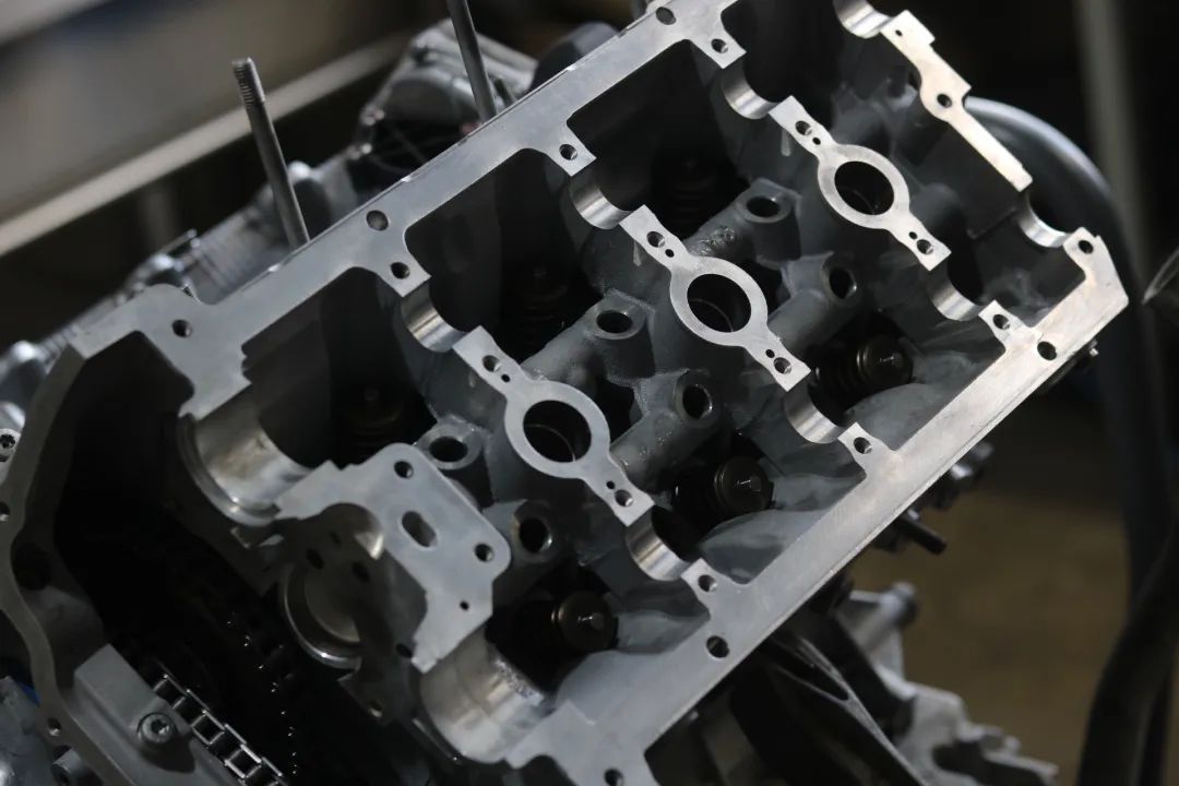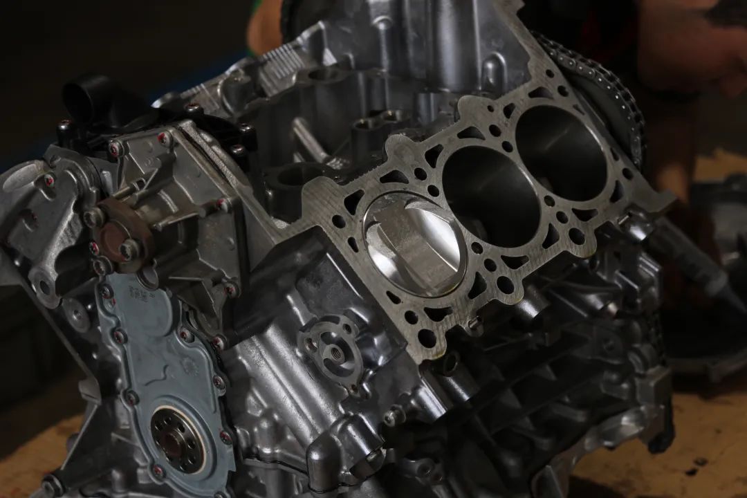 整体零部件组装中,精加工后的缸体缸套焕然一新。