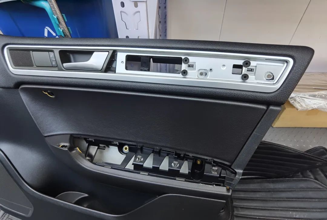 拆解的内饰覆盖件,该清洁的清洁,该修复的修复。