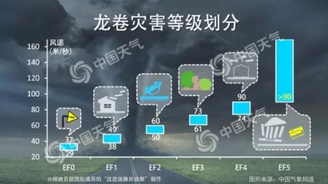 格雷格·福布斯博士是美国天气频道的一位恶劣天气专家。据他编制的统计数据显示,1950年至2012年间,在美国所有F3/EF3级及以上的龙卷风中,约有58%的龙卷风是在这三个月里发生的。而当统计F4/EF4级及以上更为强劲的龙卷风时,这一比例则提升至69%。