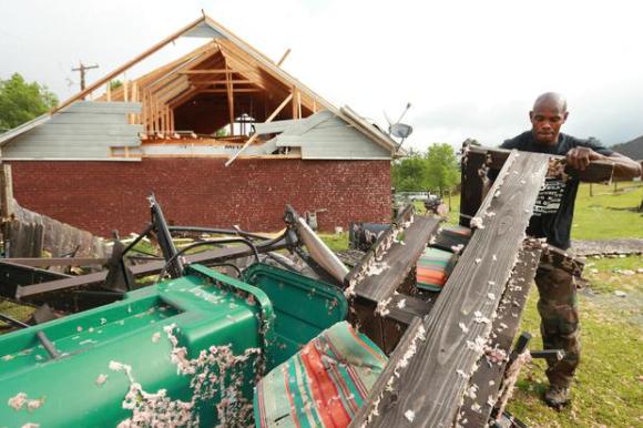5月3日在美国密西西比州亚祖县拍摄的龙卷风过后的一片狼藉