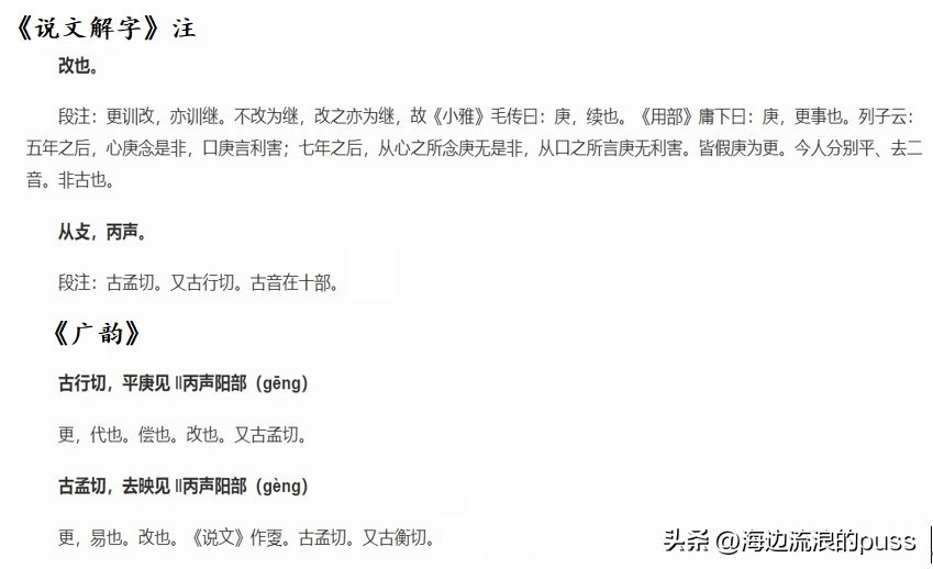 但是翻开《现代汉语词典》、《辞海》以及《字海》会发现,“更”字就只有“gēng”和“gèng”两个读音,并没有“jīng”这个读音,这是怎么回事呢?