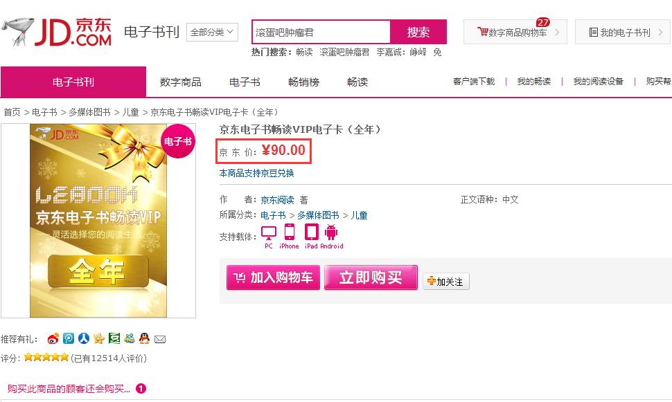 3、京东电子书畅读VIP