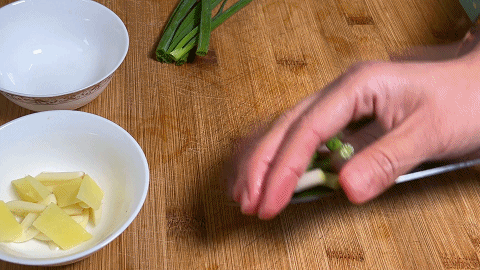 1. 大蒜几粒切成蒜片,生姜一块切成姜片,放在小碗中备用