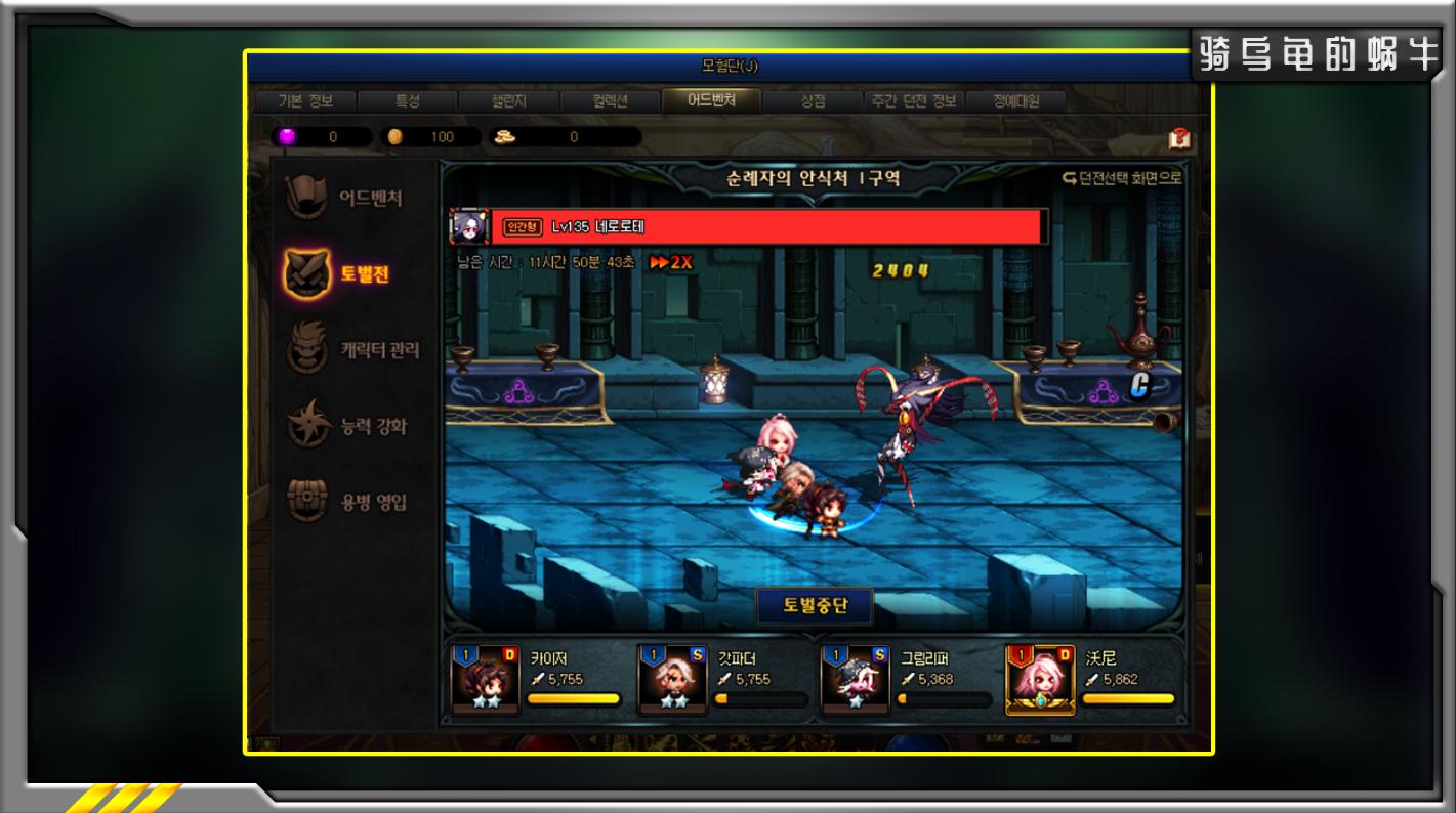 安排角色可以后开始进行作战,作战是和单领主作战,并且作战的时间长达12个小时,如果在线则是双倍进度,也就是6小时可以完成这一次作战,每个地下城的作战时间都是单独计算的,在B1-B3区域作战时会随机刷出隐藏的怪物,从而获得隐藏奖励。