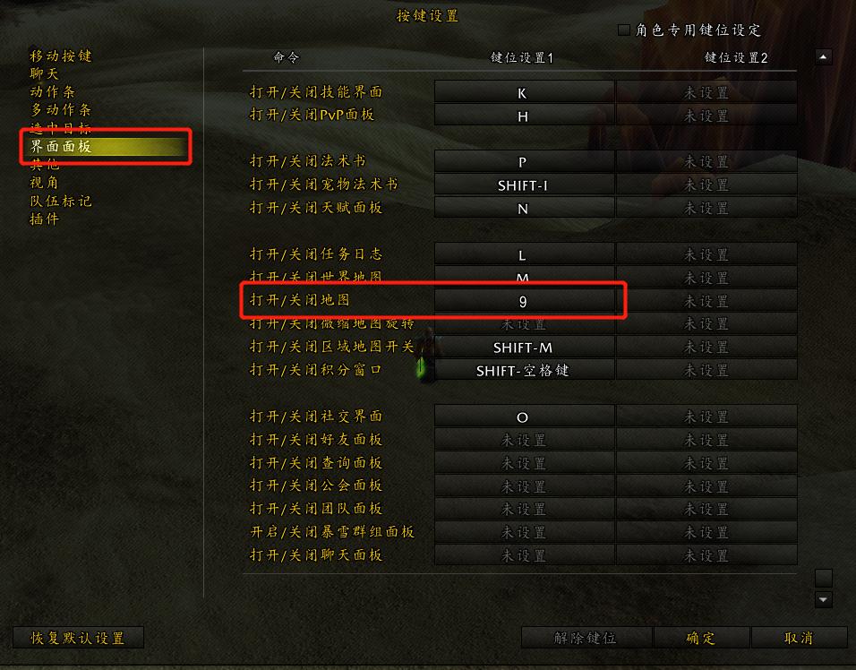 4.最后隐藏小地图,在ESC-按键设置-界面面板内,给打开/关闭地图设置一个快捷键,就可以随时开关小地图了