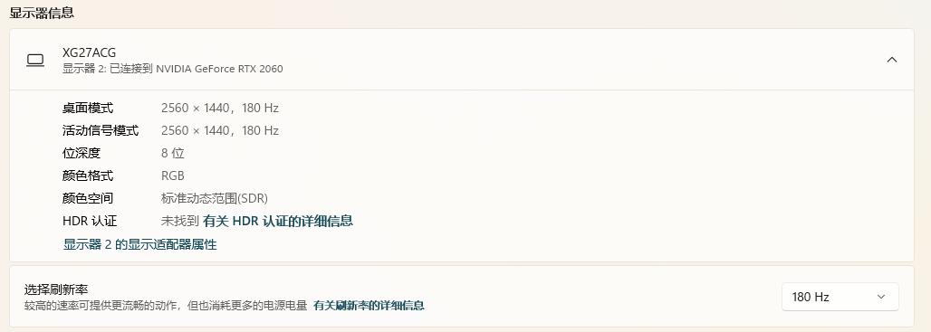 ROG绝杀27吹雪采用了27英寸Fast IPS面板,官方标称拥有2560×1440分辨率、95% DCI-P3和125% sRGB的色域覆盖、每台显示器出厂时都经过了预校准并附带校准报告、还支持VESADisplay HDR 400。