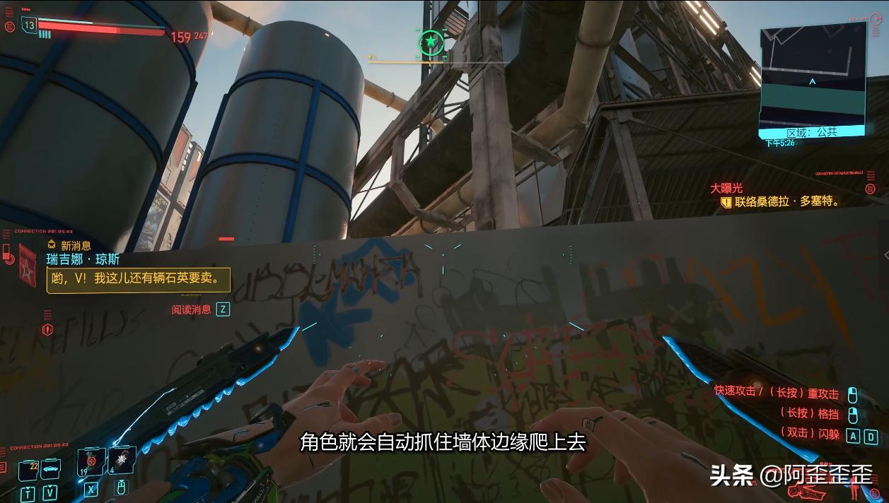 我们拿到东西之后,旁边的赛博精神病已经冲到上面去杀人了,我们不管他从旁边翻下去,直接溜走。