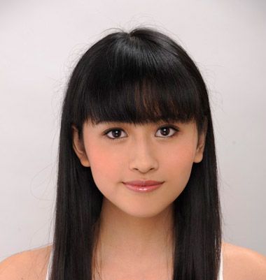 第一步:柔顺的长直发梳理整齐,带有平齐刘海的长发更好的展现女孩清纯甜美的淑女气质。