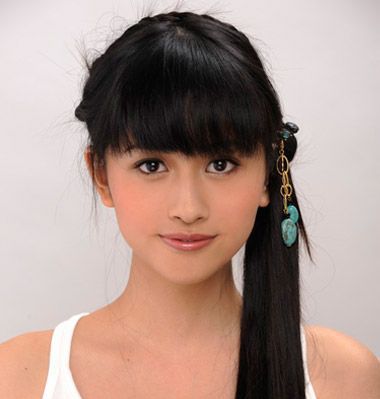 第五步:看看整体的效果吧,平齐的刘海简单的侧扎马尾造型更好的展现女孩青春的活力感。