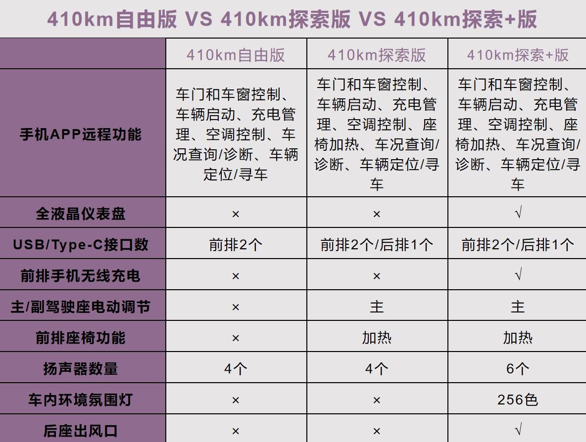 410km自由版、410km探索版和410km探索+版,怎么选?