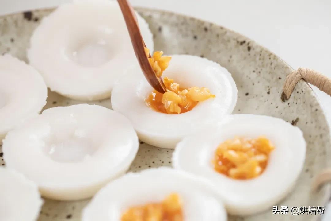 6、蒸好的粿皮会自然形成凹洞。