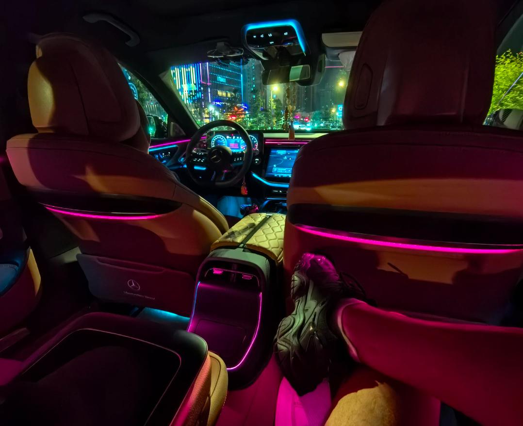 乘坐方面,特是夜间行车的时候,整车的氛围灯格调非常舒服,同时宽敞的车内空间可以方便乘坐人员更好的舒展姿态,可能唯一的美中不足是不如新势力有大屏幕和小冰箱,豪华但是还没豪华到极致。至于靠背贴合度,座椅软糯性,这些对于奔驰E级来说,基本都是小菜一碟的项目。更多是铺装路面的舒适性,起伏坡度的底盘减震,以及沟坎的冲击力度这些还是有点难度。就笔者的主观体验来看,铺装路面相当舒服,通过小型的起伏坡面也表现不错,后排乘坐没有明显的晃动感,就是沟坎的冲击力表现有点一般,还是明显的感觉人有点颠簸姿态。