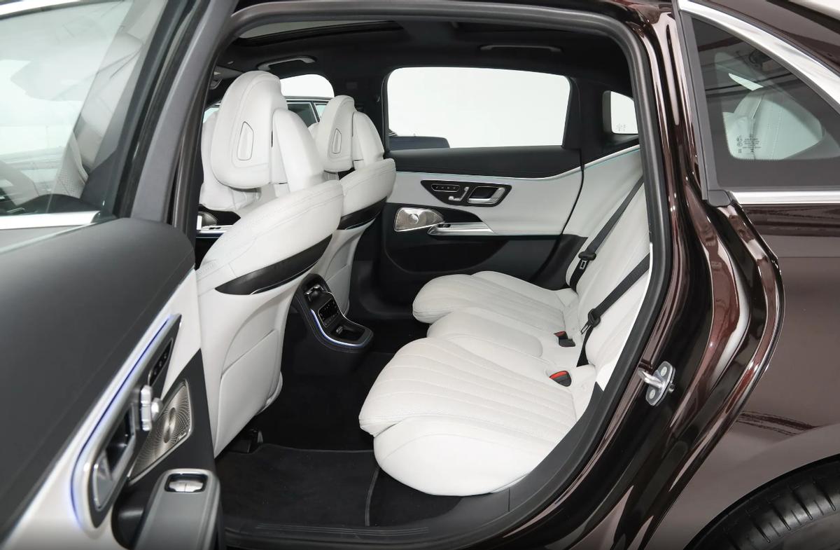 奔驰E300 L的座椅是采用了悬浮式头枕,一体式靠背,一体式腿托的组合搭配,作为百年奔驰的人机工程学设计,乘坐舒适性绝对是没啥问题的,填充物充盈且柔软,腿部与臀部的贴合度十分紧密,靠背可以适配仰姿,直靠,确实是一款非常优秀的座椅设计。旁侧板没有完全隐藏,而是保留了一组方向控制,稍显败笔,不过也无伤大雅。