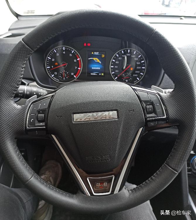 机舱检测完,除了电瓶可能需要更换以外,其他便没有什么大的问题,接下来咱们检测驾驶舱:虽然内饰眨眼看没啥感觉,但当你慢慢去了解时你会发现挺优雅美观,并且善于精工细作的哈弗,在中控台及门内饰板等处,分别采用软性搪塑覆盖及皮质面料包裹,以强化车内的档次感。