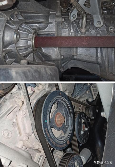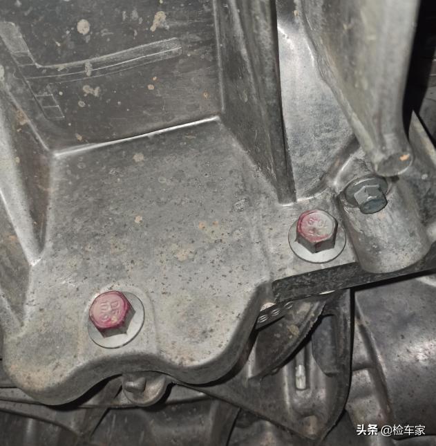 变速箱机脚支架螺丝也没有拧动痕迹,说明发动机以及变速箱均没有吊装修复,一万多公里也不至于大修发动机或者变速箱。