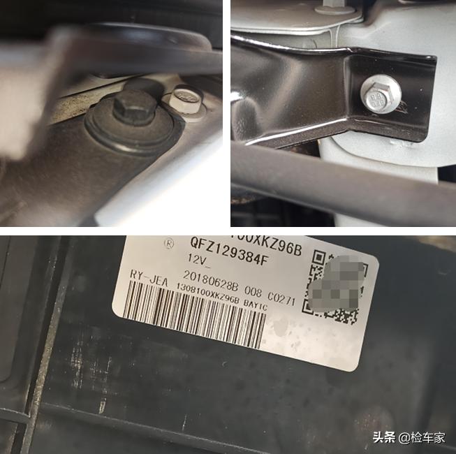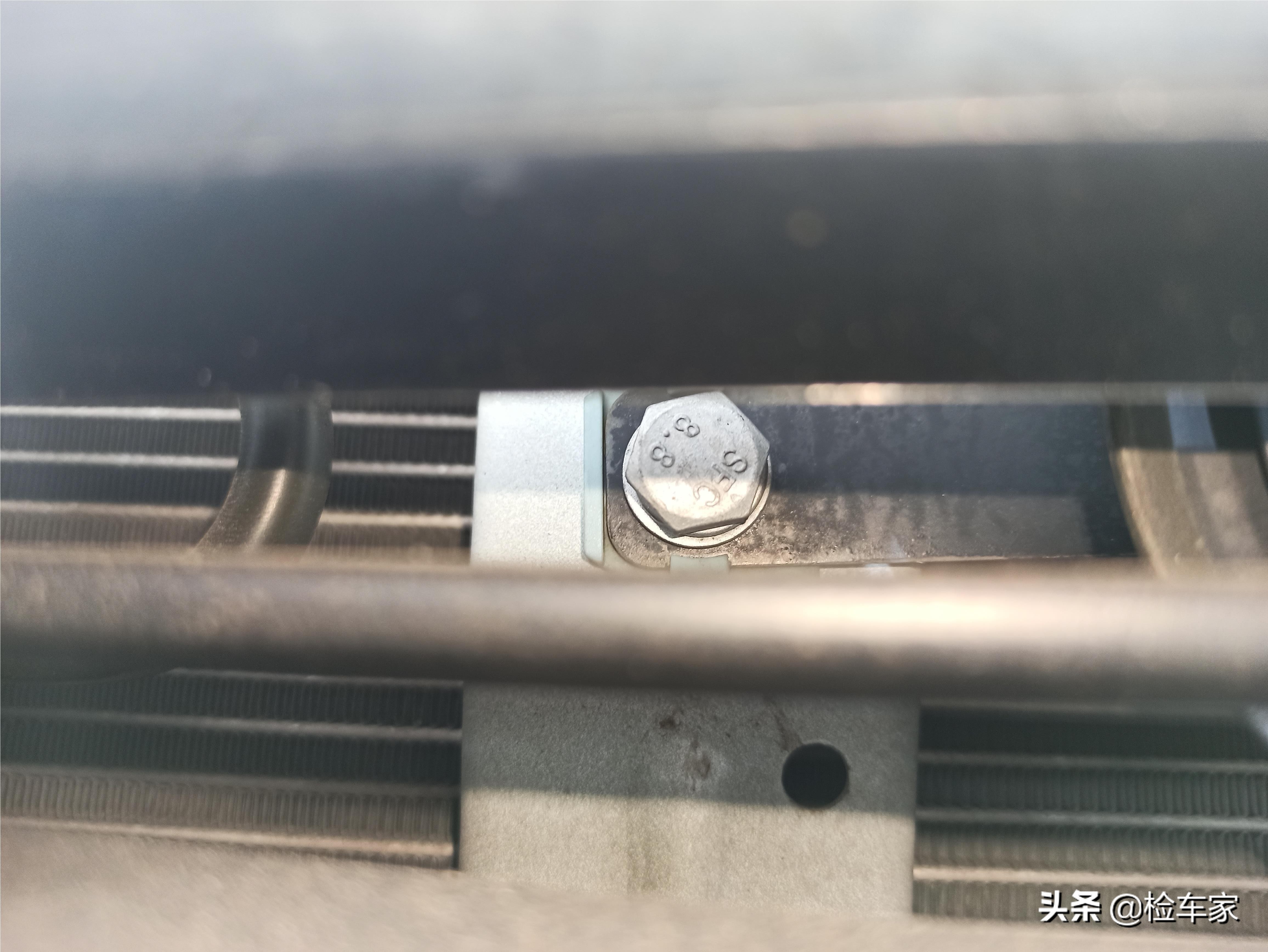叶子板固定螺丝,大灯固定螺丝,水箱框架螺丝均无拆卸痕迹。水箱集风罩生产日期为18年6月,符合车辆生产日期。