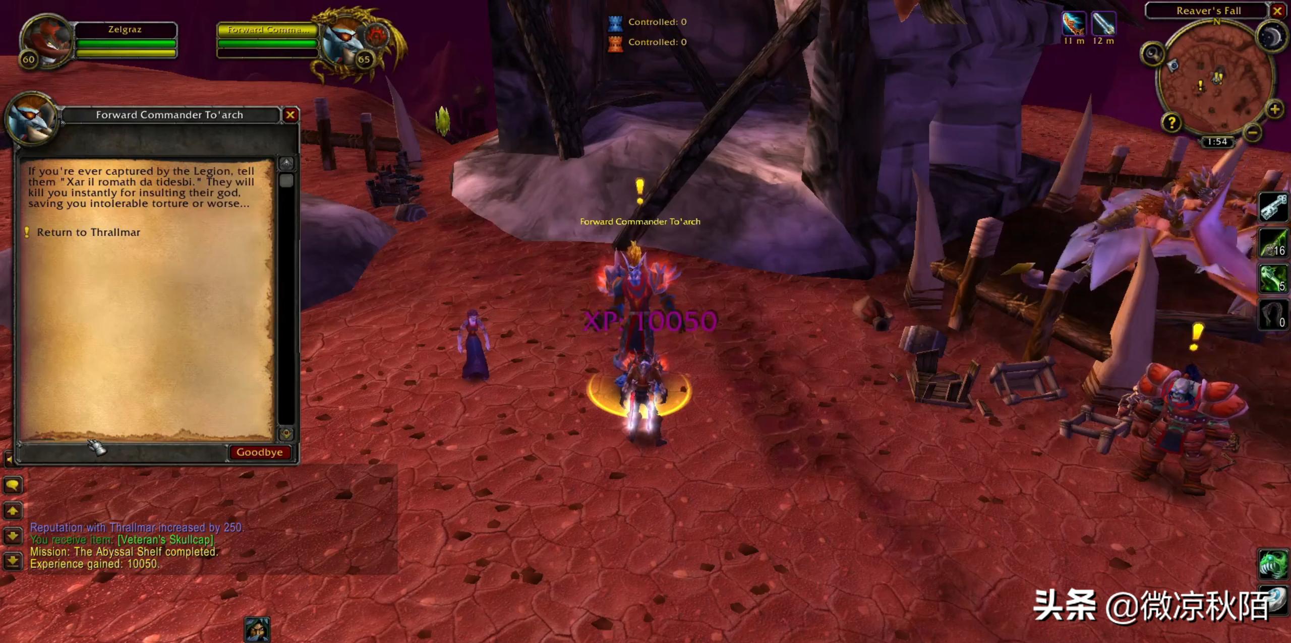 以上超长的任务完成,奥金尼地穴的任务终结,我们可以抽出时间回去艾泽拉斯了。