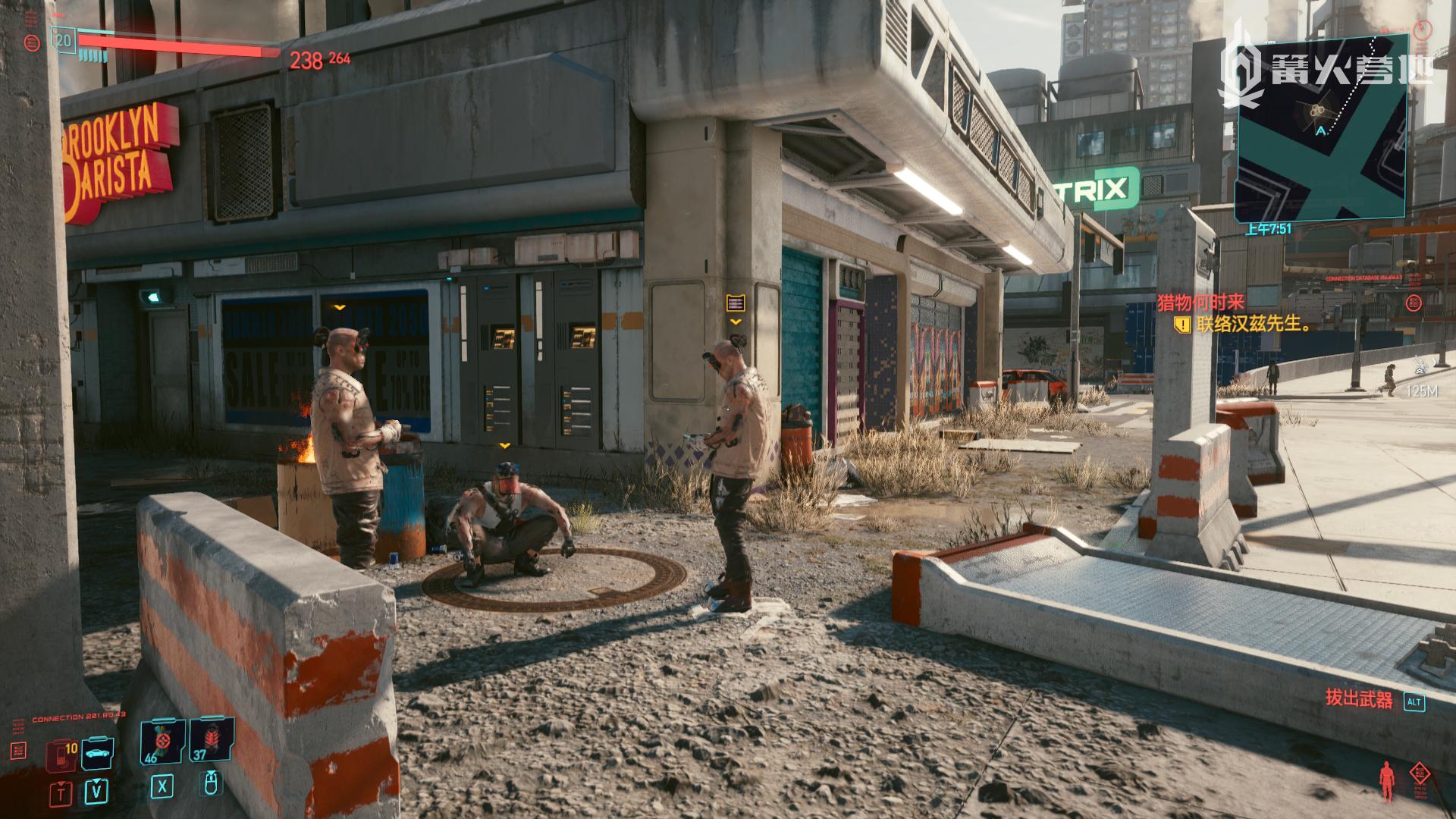 18. 路边有那种可以在小地图上看到视野范围的 NPC,如果其势力与你关系不和,就不要走太近,否则可能会引发敌对状态,导致街头火拼。