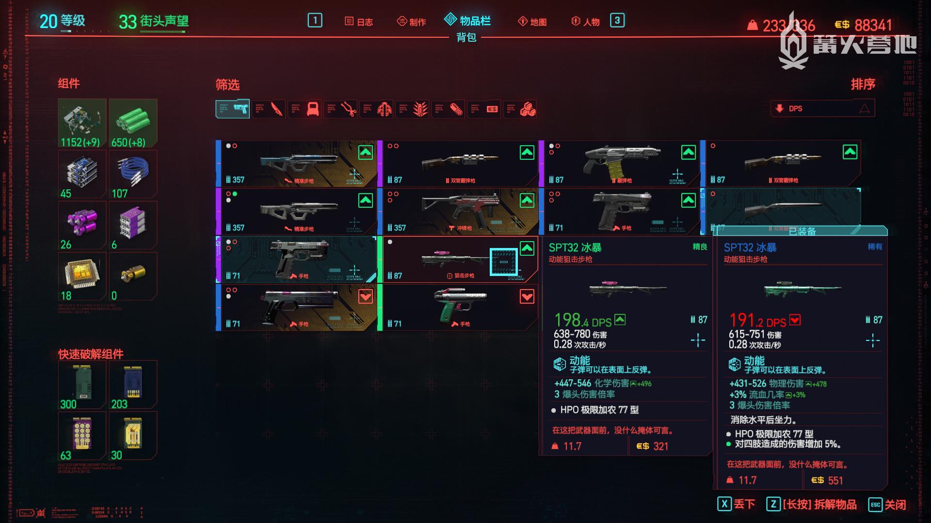 23. 游戏过程中你能捡到大量的武器。如果在选择时挑花了眼,只用记住一点:选 DPS 高的准没错。三个武器栏分别配备手枪或冲锋枪/霰弹枪/步枪或狙击枪,足以应对大多数情况。