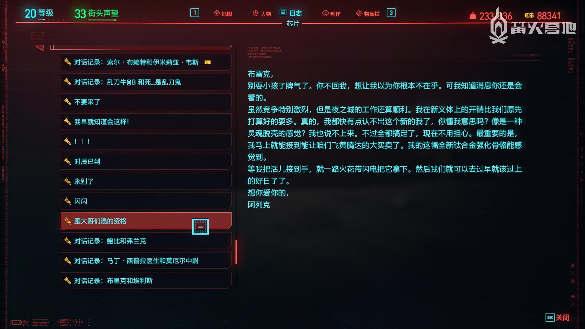 47. 如果没能在芯片刚得到时阅读,可以进入主菜单,在最后的日志栏里选择芯片项,就可以阅读所有得到的芯片了。