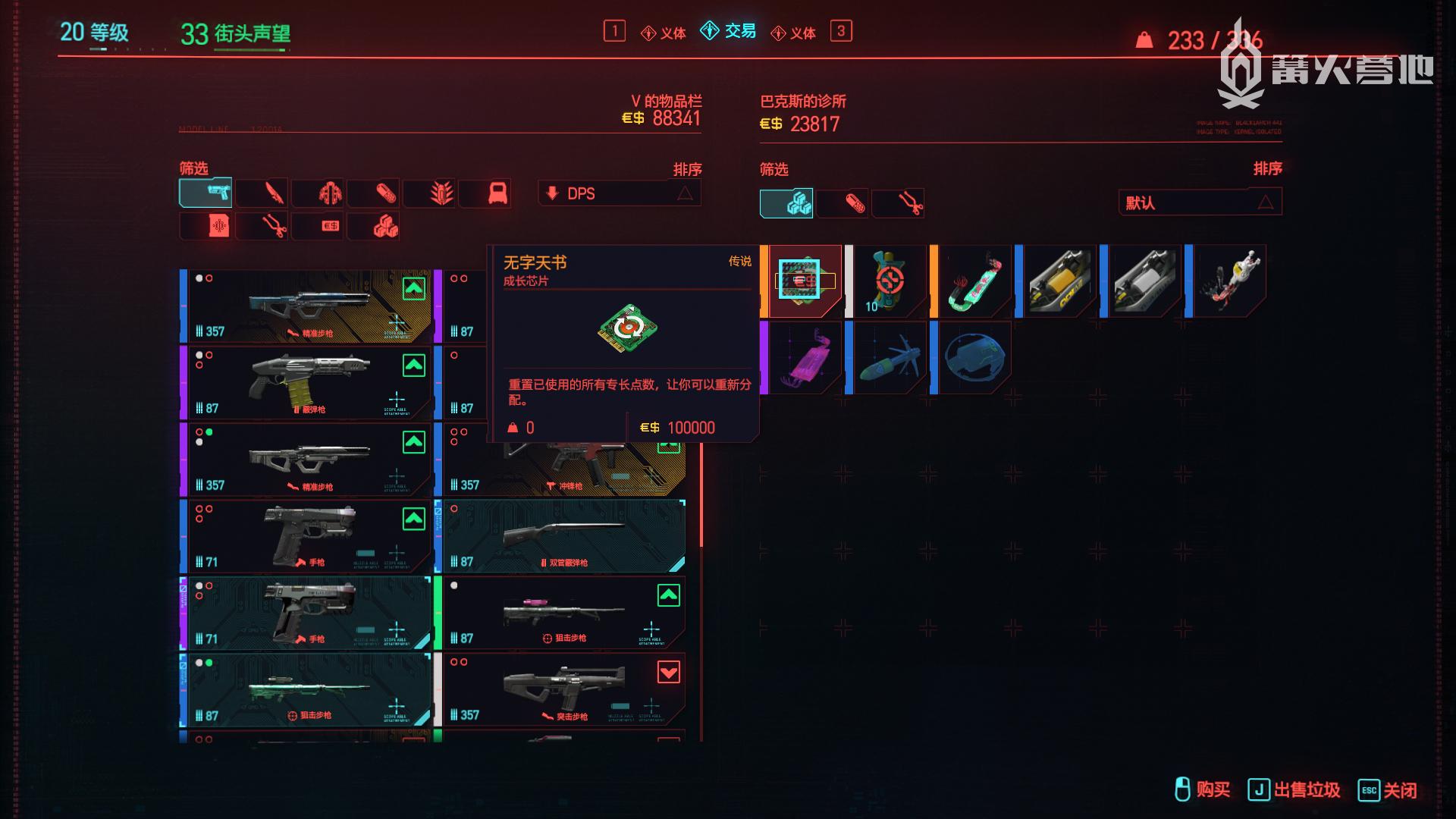 7. 你可以在义体医生那儿花费 100000 元购买无字天书,重置所有的专长点数(不是属性点数)。