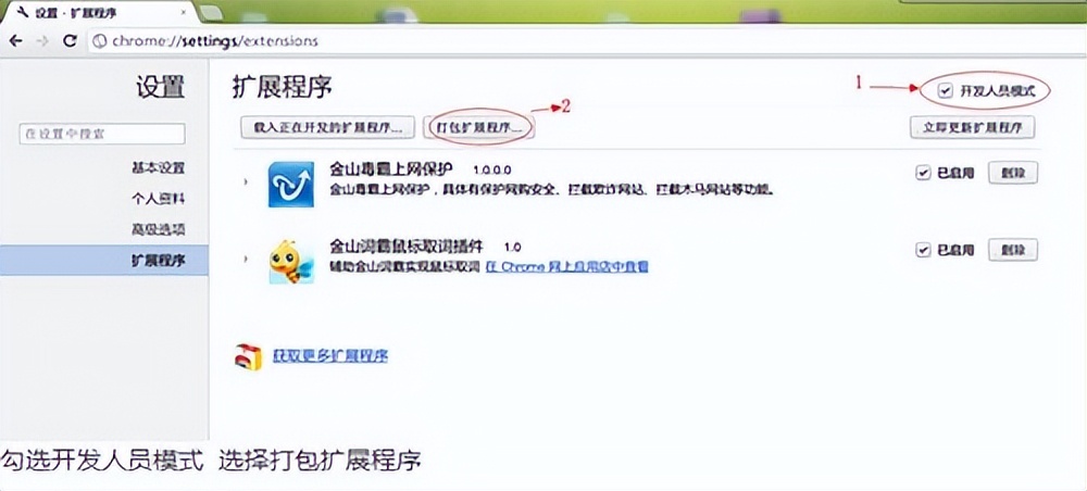 2、 勾选开发人员模式,选择打包扩展程序