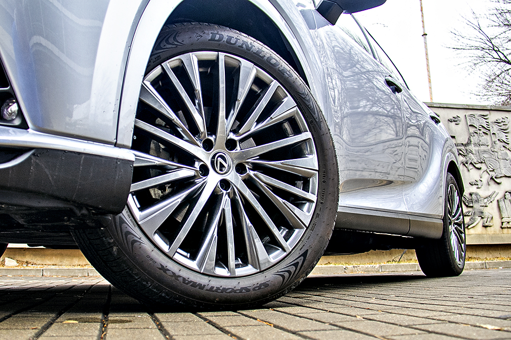 镀铬多条幅轮辋与车身很搭,轮胎选用邓禄普SP SportMAXX系列,这款轮胎注重湿地制动和静音,尺寸:235/50 R21。