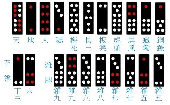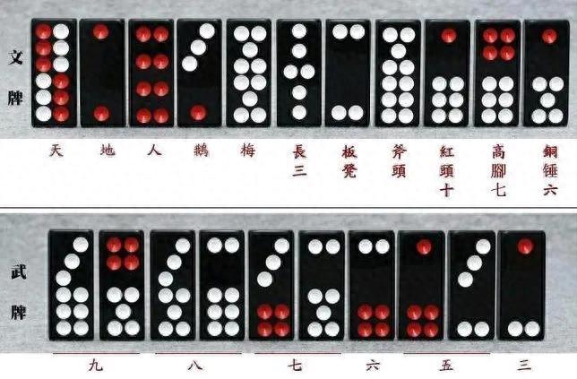 牌九共32张骨牌,分「文子」和「武子」两类: