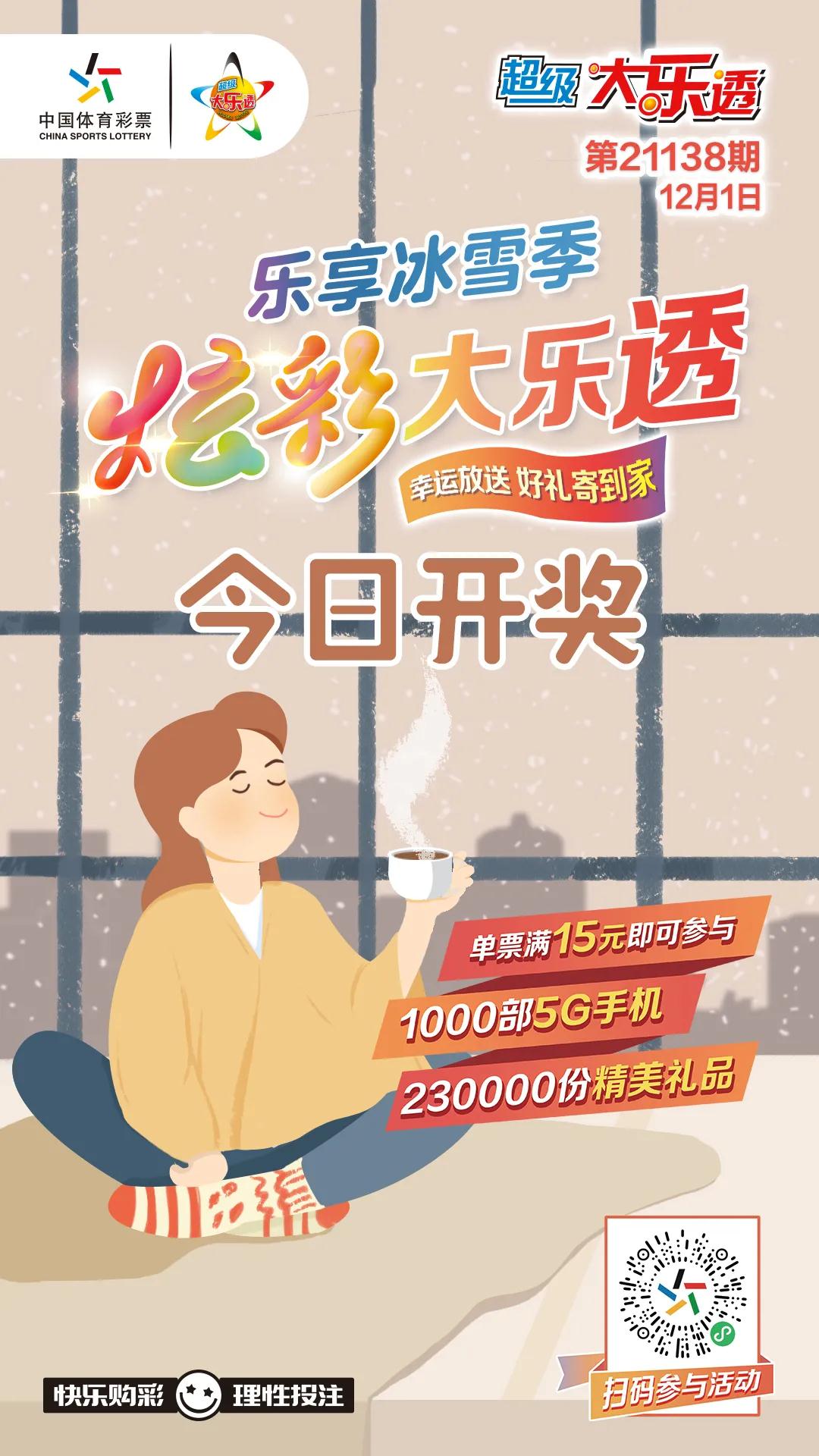 目前,超级大乐透正在进行全国性的年终回馈活动——“乐享冰雪季,炫彩大乐透”,希望广大购彩者在理性购彩、量力而行的同时,积极参加活动。“乐享冰雪季 炫彩大乐透”活动自超级大乐透第21134期(2021年11月20日20:10开售)开始至第21143期(2021年12月13日20:00止售)结束共开展10期。活动期间,购彩者通过线下实体店,购买单票满15元的大乐透彩票,如票面宣传区出现文字“恭喜中得冰雪季活动奖品,请扫码领取!”即可在12月16日23:59:59前,通过“中国体育彩票”APP或微信小程序,进入“乐享冰雪季,炫彩大乐透”活动页面扫描票面底部二维码领取活动奖品。