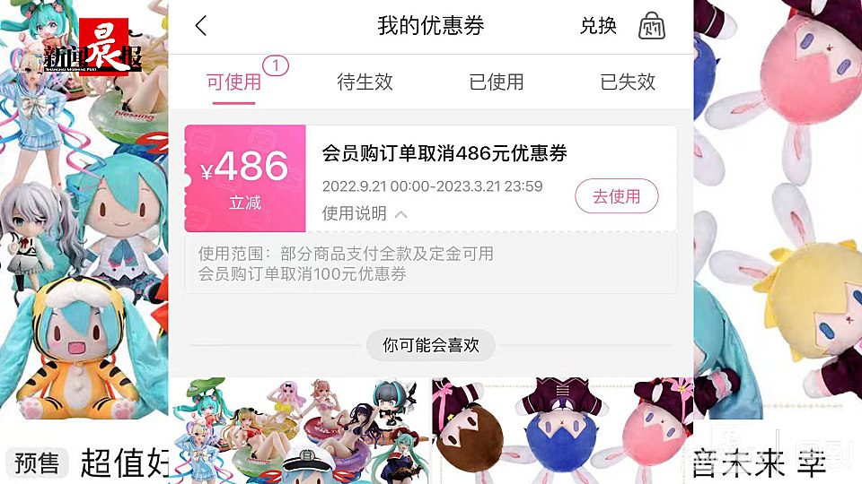 王女士收到“会员购订单取消486元优惠券”