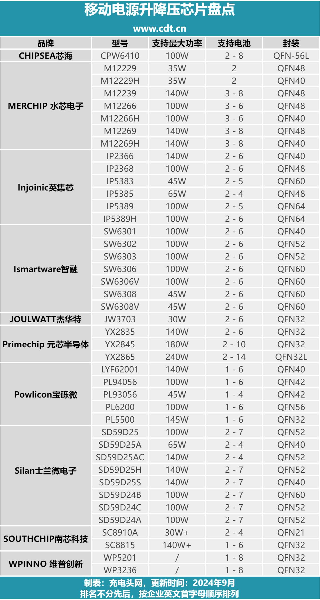 充电头网精心统计了众多快充芯片企业所推出的多款移动电源升降压芯片,并将这些信息汇总整理形成了下表,详细展示了各家企业的主打产品及其相关特点。