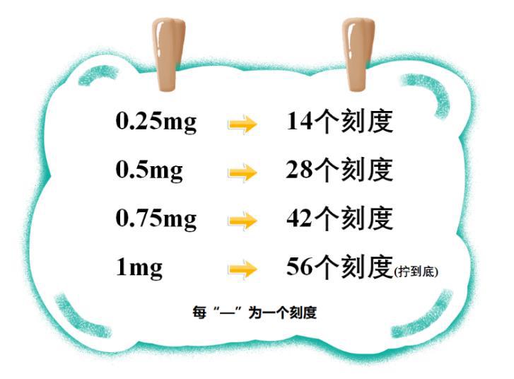 0.25 mg 是 14 个刻度,0.75 mg 是 42 个刻度。