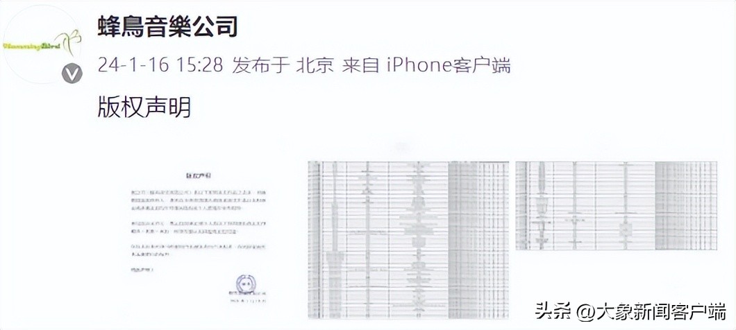 原以为解约大戏落幕,谁知昨日,蜂鸟音乐又突然宣示主权。