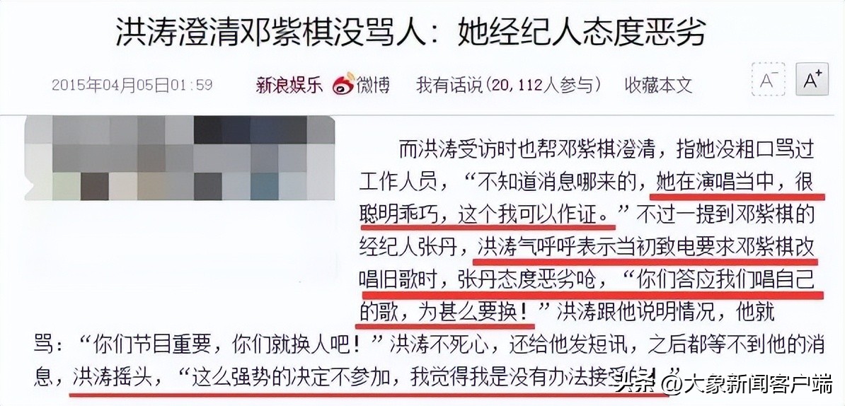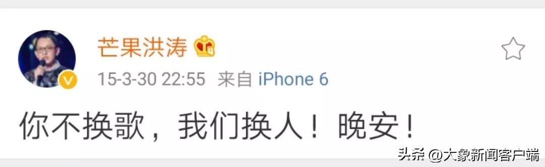 后来采访中证实,是经纪人张丹一开始表示没档期,又坚持唱新歌,不然不上节目。洪涛也澄清了这一点。