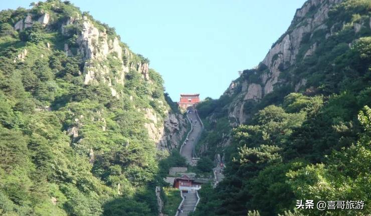 中天门,是泰山登山东、西两路的交汇点,海拔847米。此处为登顶半程,上下必经之地。中溪山北侧为东溪,俗称大直沟,古为登岱东路,后废弃。中天门建于清,为两柱单门式石坊。