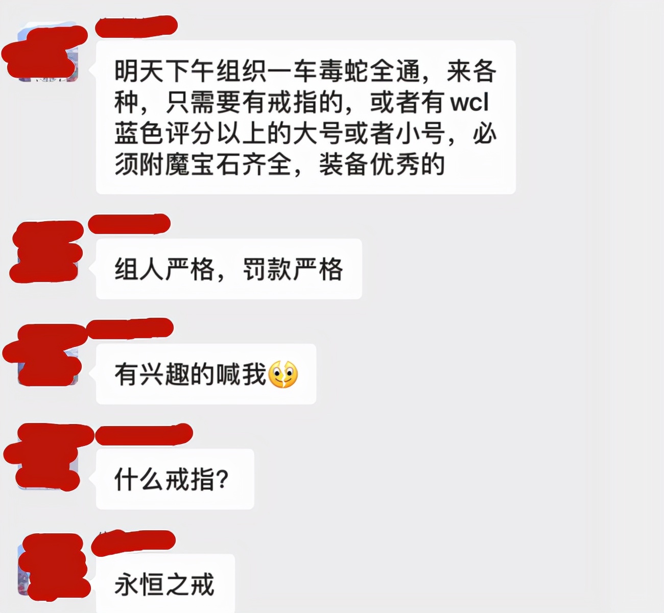 祥子哥前两天就找了一个毒蛇神殿金团,进组时祥子哥说过凯尔萨斯和瓦丝琪虽然没有全通,但是两个BOSS的流程都打过几次,自身并没有什么问题。组人的玩家当时也查看了祥子哥奶萨的装备,符合他们团队的要求,就把祥子哥奶萨组进了团队里。结果开打前指挥上线,挨个查看永恒之戒,只要没有永恒之戒的一律踢出团队,接着祥子哥和其他几位玩家相继被踢出了团队。