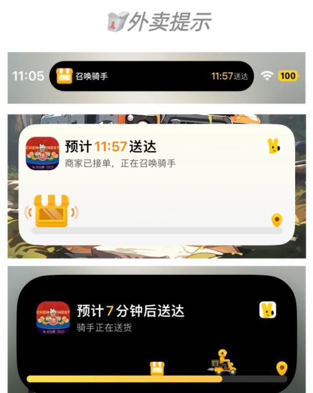它将原来的“刘海屏”改为能够整合应用通知、活动、提示、音乐等等的信息的小屏幕,虽然只有一条,但方便了我们日常用机:不用专门打开某个APP,也能看到它的进程,比如导航、打车情况、外卖到哪了......