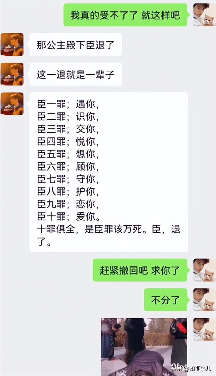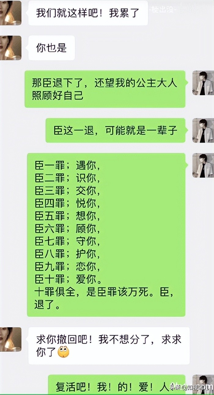 臣犯了十宗罪,这个梗其实就是提分手的一种方式,来源自一段土味情话。说是土味情话,又感觉不是很恰当,毕竟是用来提分手的,和情话有点不沾边的样子,不过也可能是舔狗决定走的时候给对方法的最后一条情话,所以说是情话应该也没错。