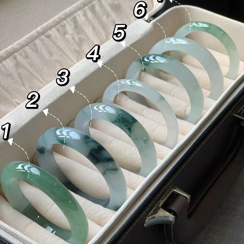 翡翠手镯更加通透,有一种清灵之美。翡翠触手冰凉,叮当声也很悦耳。