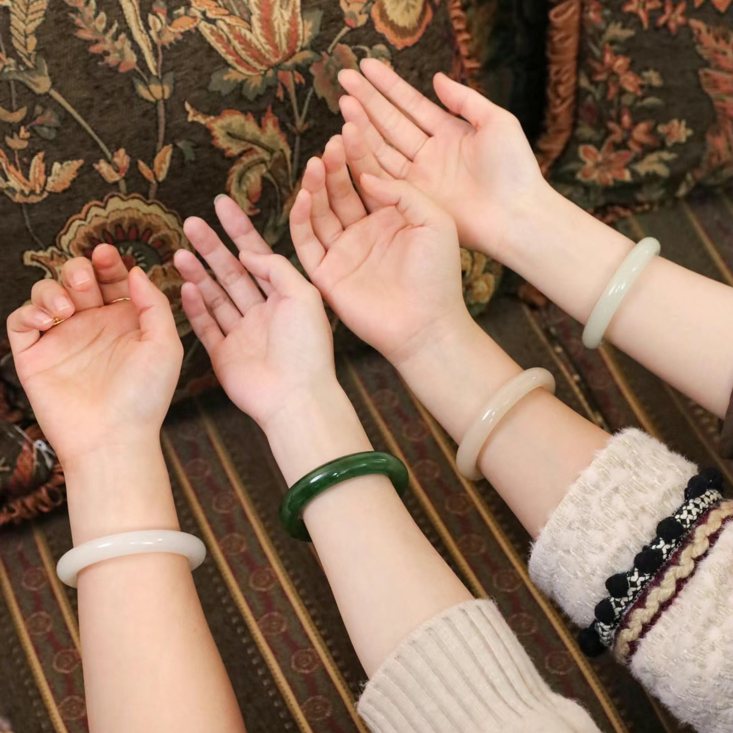 玉手镯比较细腻,有一种温润、大气的美。玉触手生温,是柔和细腻的。