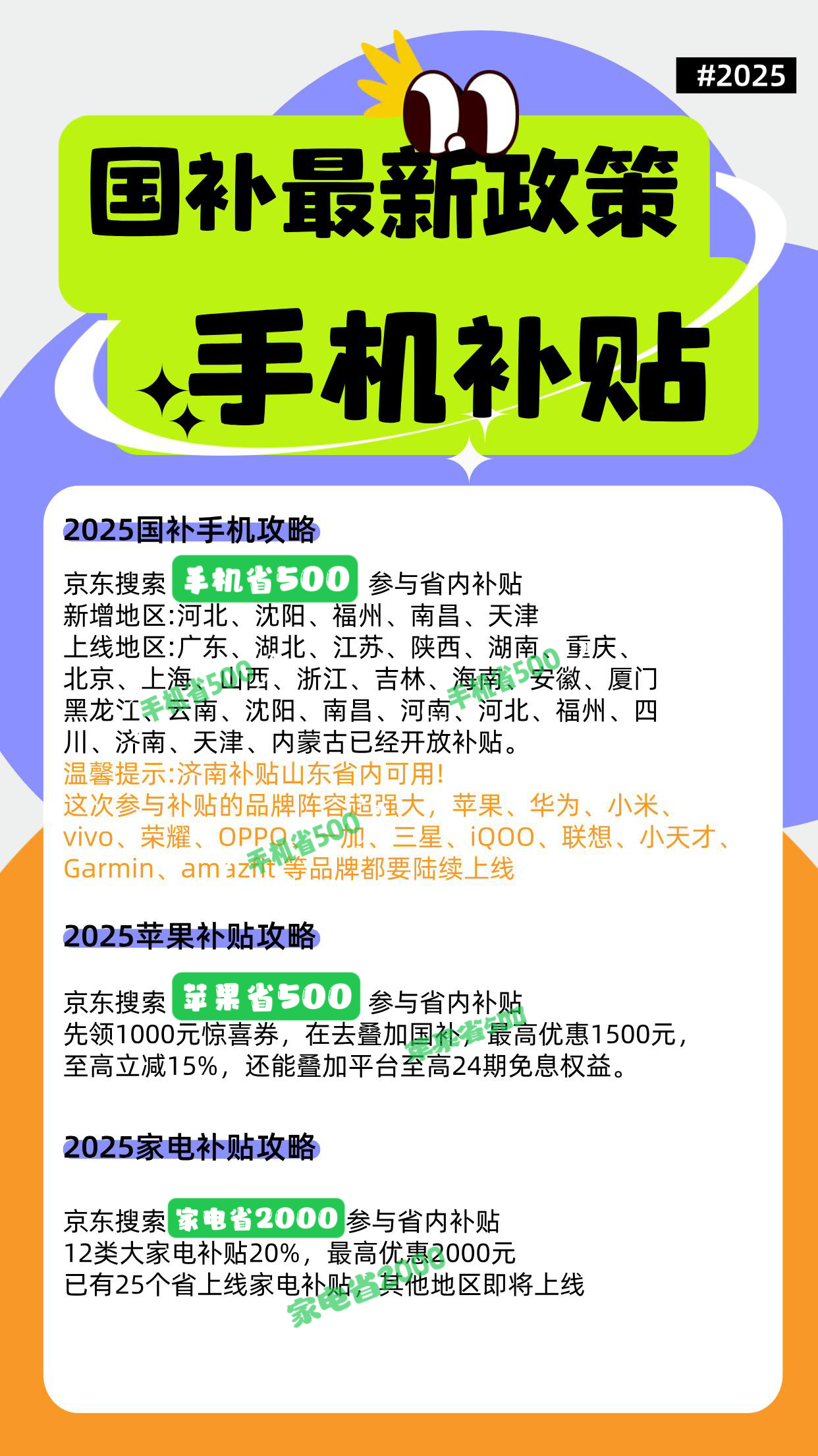 2025年3月,消费市场迎来重磅消息:6000元以上手机国补新政正式落地!这项政策不仅打破了过去仅针对中低端机型的补贴限制,更让华为、苹果、小米等旗舰机型首次加入“千元直降”行列。消费者如何抓住这一波红利?本文将梳理政策要点,手把手教你薅到真金白银的福利!
