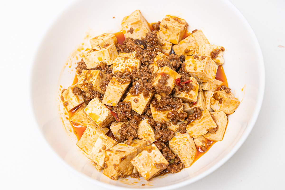 炒的麻婆豆腐就像饭店的出品一样,有形有色。