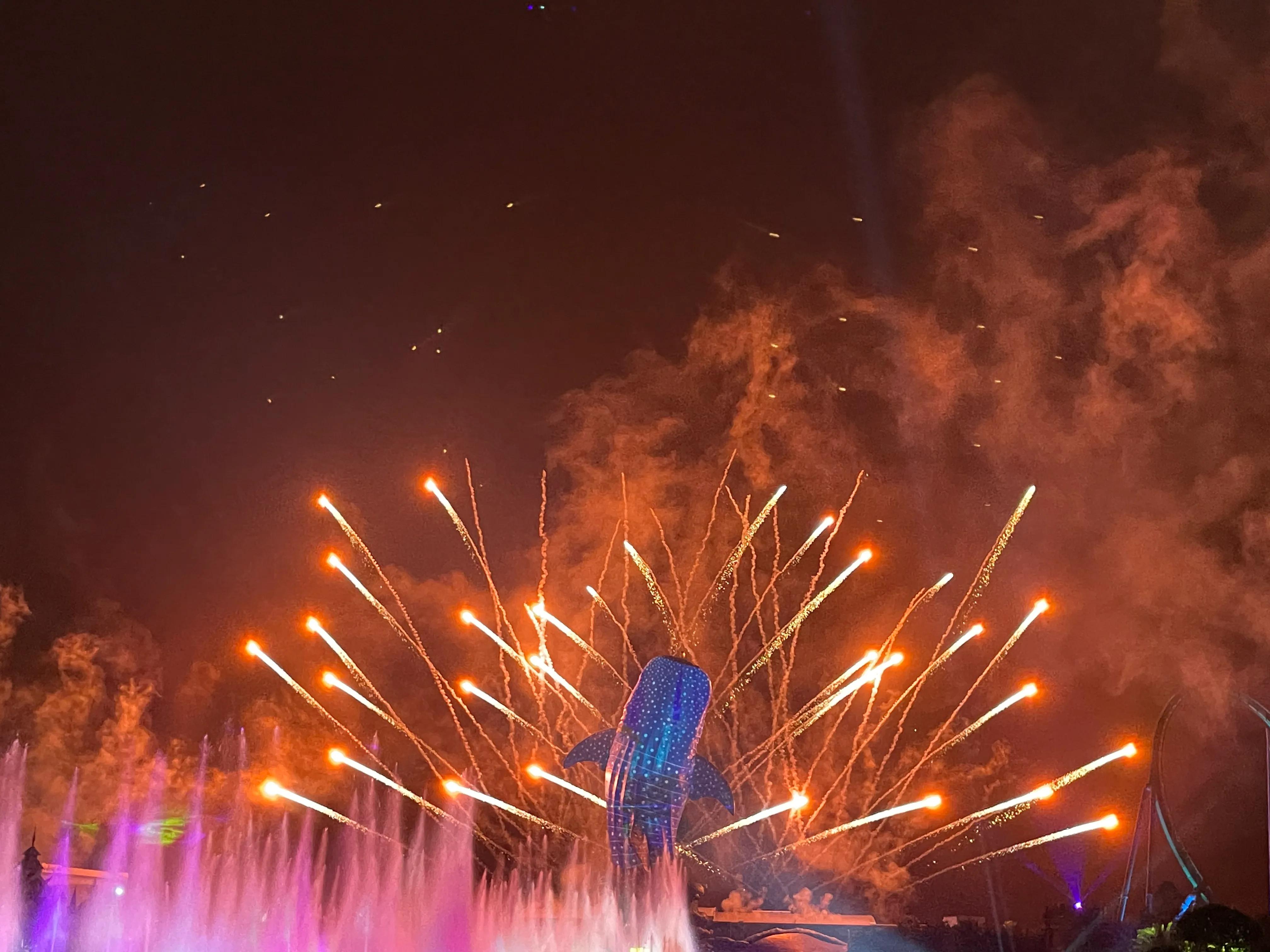 之所以推荐珠海长隆海洋世界,是因为游乐场即包含了海洋动物的各种场馆,还穿插了过山车等游乐设施,玩一整天,到了晚上还有烟火秀和无人机表演: